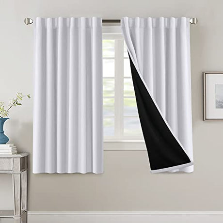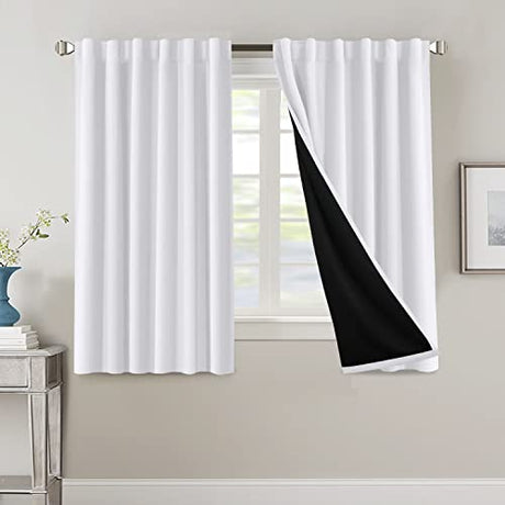 100% Blackout Curtains for Bedroom with Black Liner Full Room Darkening Curtains 54 Inches Long Thermal Insulated Back Tab/Rod Pocket Window Treatment Drapes for Living Room, Pure White, 2 Panels