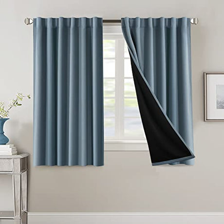 100% Blackout Curtains for Bedroom with Black Liner Full Room Darkening Curtains 54 Inches Long Thermal Insulated Back Tab/Rod Pocket Window Treatment Drapes for Living Room, Stone Blue, 2 Panels