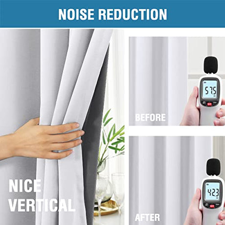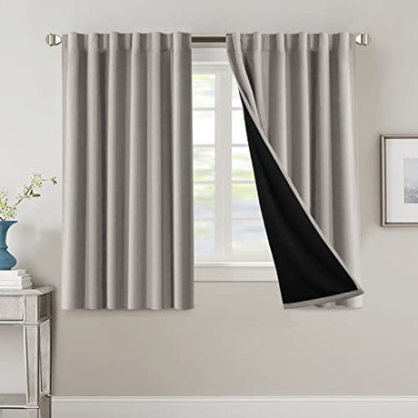 100% Blackout Curtains for Bedroom with Black Liner Full Room Darkening Curtains 63 Inches Long Thermal Insulated Back Tab/Rod Pocket Window Treatment Drapes for Living Room, Dove Grey, 2 Panels