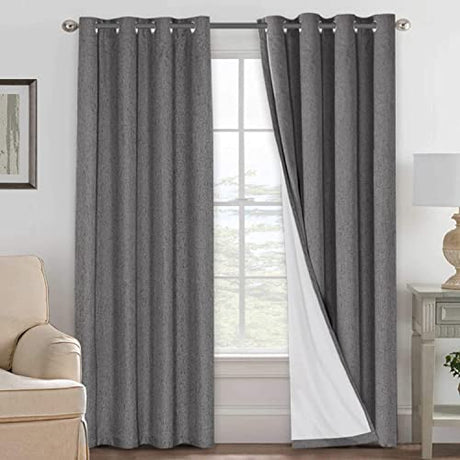 H.VERSAILTEX Linen Blackout Curtains 96 Inches Long 100% Absolutely Blackout Thermal Insulated Textured Linen Look Curtain Draperies Anti-Rust Grommet, Energy Saving with White Liner, 2 Panels, Grey