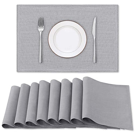 H.VERSAILTEX Linen Placemats Set of 8 Premium Solid Table Placemats for Dining Table Spill-Proof Waterproof Table Mats Heat-Resistant Kitchen Table Mats Washable, 12x18 inches, Grey