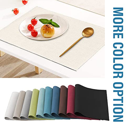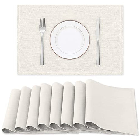 H.VERSAILTEX Linen Placemats Set of 8 Premium Solid Table Placemats for Dining Table Spill-Proof Waterproof Table Mats Heat-Resistant Kitchen Table Mats Washable, 12x18 inches, Ivory