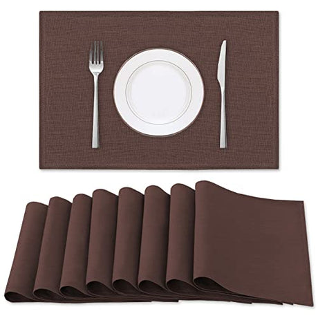 H.VERSAILTEX Linen Placemats Set of 8 Premium Solid Table Placemats for Dining Table Spill-Proof Waterproof Table Mats Heat-Resistant Kitchen Table Mats Washable, 12x18 inches, Chocolate