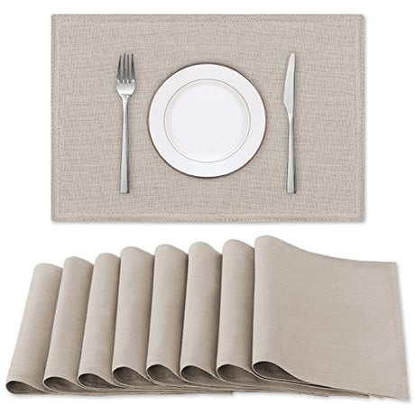 H.VERSAILTEX Linen Placemats Set of 8 Premium Solid Table Placemats for Dining Table Spill-Proof Waterproof Table Mats Heat-Resistant Kitchen Table Mats Washable, 12x18 inches, Taupe