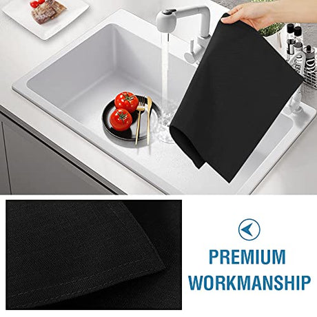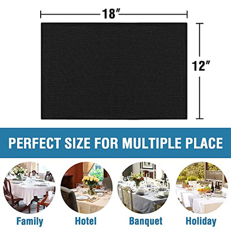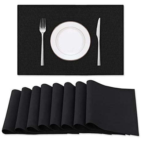 H.VERSAILTEX Linen Placemats Set of 8 Premium Solid Table Placemats for Dining Table Spill-Proof Waterproof Table Mats Heat-Resistant Kitchen Table Mats Washable, 12x18 inches, Black