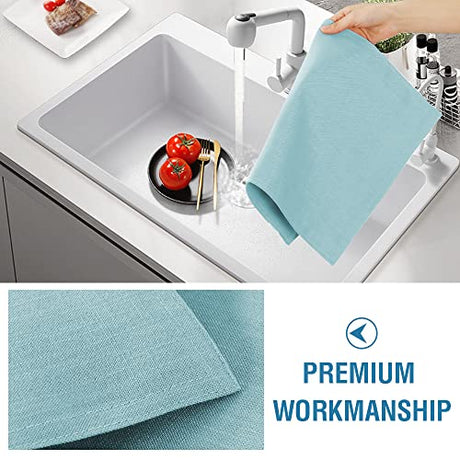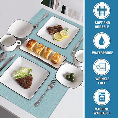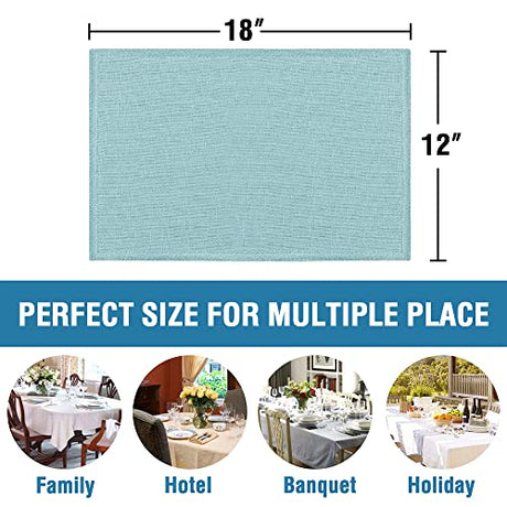 H.VERSAILTEX Linen Placemats Set of 8 Premium Solid Table Placemats for Dining Table Spill-Proof Waterproof Table Mats Heat-Resistant Kitchen Table Mats Washable, 12x18 inches, Aqua