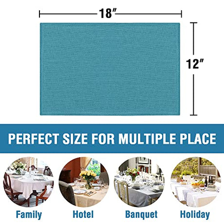H.VERSAILTEX Linen Placemats Set of 6 Premium Solid Table Placemats for Dining Table Spill-Proof Waterproof Table Mats Heat-Resistant Kitchen Table Mats Washable, 12x18 inches, Teal