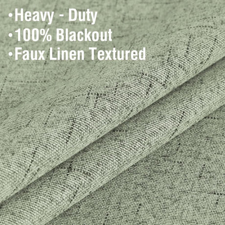H.VERSAILTEX Primitive Linen Curtains 100% Blackout Curtain Drapes Burlap Fabric Curtains with White Thermal Insulated Liner, Grommet Top Curtains Living Room/Bedroom (2 Panels, 42 x 63 Inch, Sage)