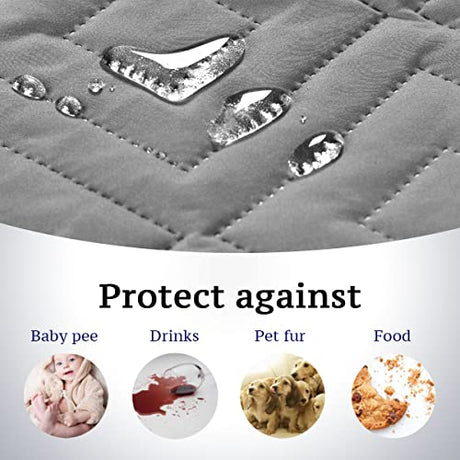 H.VERSAILTEX Reversible Quilted Recliner Covers Water Resistant Furniture Protector for Reclienr Chair with Elastic Straps for Pets Kids Sitting Width Up to 28"(Oversized Recliner, Light Grey/Beige)