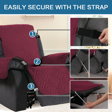 H.VERSAILTEX Reversible Quilted Recliner Covers Water Resistant Furniture Protector for Reclienr Chair with Elastic Straps for Pets Kids Sitting Width Up to 28"(Oversized Recliner, Red/Tan)