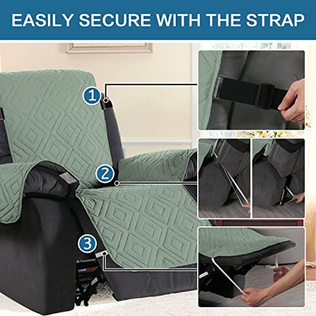 H.VERSAILTEX Reversible Quilted Recliner Covers Water Resistant Furniture Protector for Reclienr Chair with Elastic Straps for Pets Kids Sitting Width Up to 22"(Recliner, Sage/Beige)