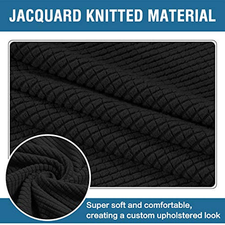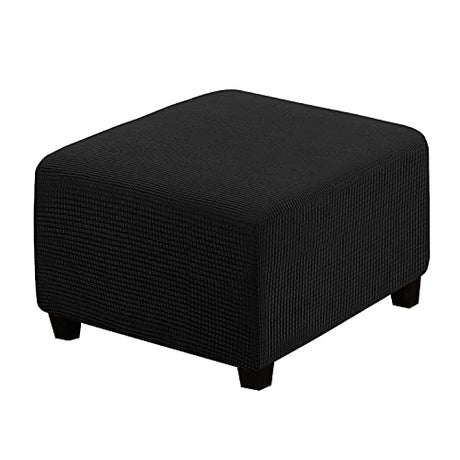 H.VERSAILTEX Square Ottoman Covers Ottoman Slipcovers Folding Storage Stool Furniture Protector Form Fit with Elastic Bottom, Stretch High Spandex Small Checks Jacquard Fabric(Medium,Black)