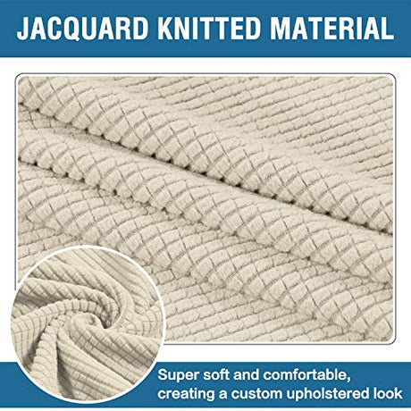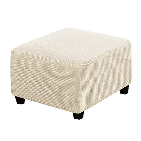H.VERSAILTEX Square Ottoman Covers Ottoman Slipcovers Folding Storage Stool Furniture Protector Form Fit with Elastic Bottom, Stretch High Spandex Small Checks Jacquard Fabric(Medium,Natural)