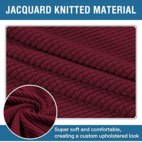 H.VERSAILTEX Square Ottoman Covers Ottoman Slipcovers Folding Storage Stool Furniture Protector Form Fit with Elastic Bottom, Stretch High Spandex Small Checks Jacquard Fabric(Medium,Burgundy Red)