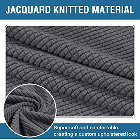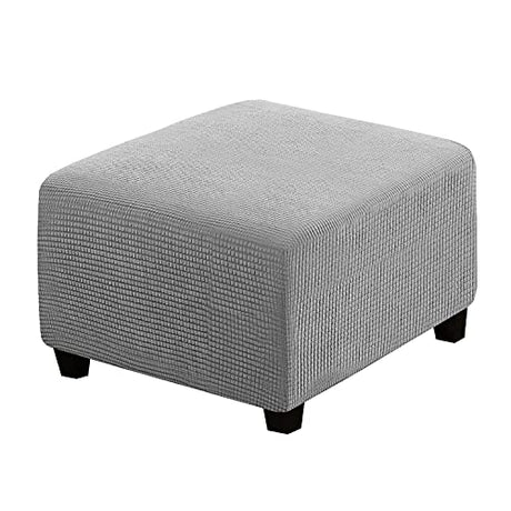 H.VERSAILTEX Square Ottoman Covers Ottoman Slipcovers Folding Storage Stool Furniture Protector Form Fit with Elastic Bottom, Stretch High Spandex Small Checks Jacquard Fabric(Medium,Grey)