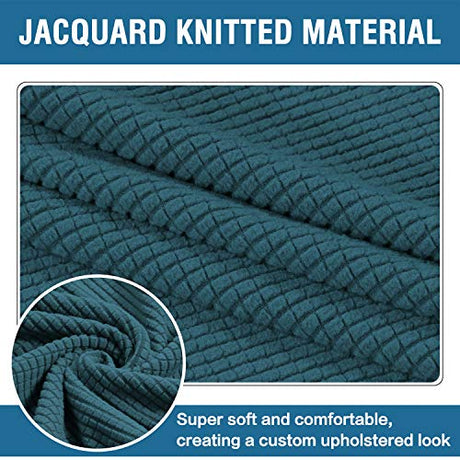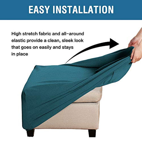 H.VERSAILTEX Square Ottoman Covers Ottoman Slipcovers Folding Storage Stool Furniture Protector Form Fit with Elastic Bottom, Stretch High Spandex Small Checks Jacquard Fabric(Medium,Deep Teal)