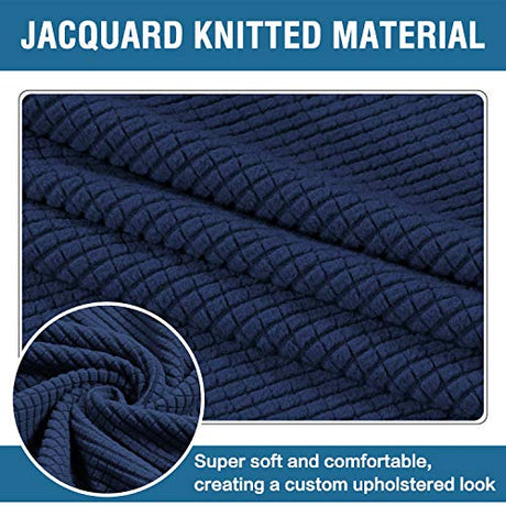 H.VERSAILTEX Square Ottoman Covers Ottoman Slipcovers Folding Storage Stool Furniture Protector Form Fit with Elastic Bottom, Stretch High Spandex Small Checks Jacquard Fabric(Medium,Navy)