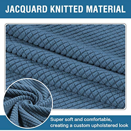 H.VERSAILTEX Square Ottoman Covers Ottoman Slipcovers Folding Storage Stool Furniture Protector Form Fit with Elastic Bottom, Stretch High Spandex Small Checks Jacquard Fabric(Medium,Dusty Blue)