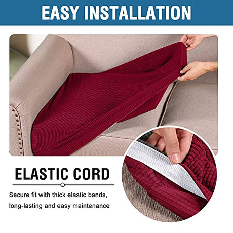 H.VERSAILTEX Super Stretch Individual Seat Cushion Covers Sofa Covers Couch Cushion Covers Slipcovers Featuring Thick Jacquard Textured Twill Fabric (3 Piece XL Sofa Cushion Covers, Burgundy Red)