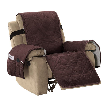 H.VERSAILTEX Thick Velvet Quilted Recliner Covers for Recliner Chair Covers Reclining Chair Slipcover Recliner Couch Cover with Non Slip Backing and Wider Elastic Strap (Oversaized Recliner, Brown)