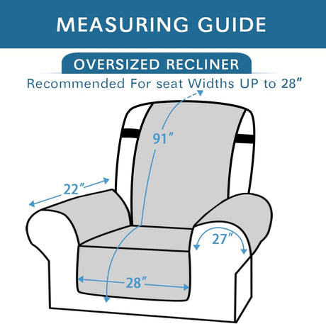 H.VERSAILTEX Thick Velvet Quilted Recliner Covers for Recliner Chair Covers Reclining Chair Slipcover Recliner Couch Cover with Non Slip Backing and Wider Elastic Strap (Oversaized Recliner, Grey)