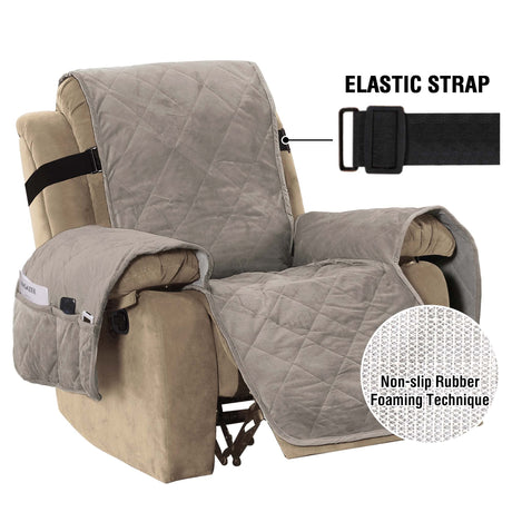 H.VERSAILTEX Thick Velvet Quilted Recliner Covers for Recliner Chair Covers Reclining Chair Slipcover Recliner Couch Cover with Non Slip Backing and Wider Elastic Strap (Oversaized Recliner, Taupe)