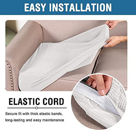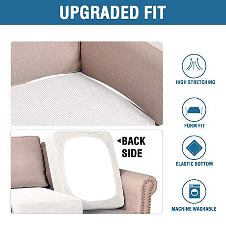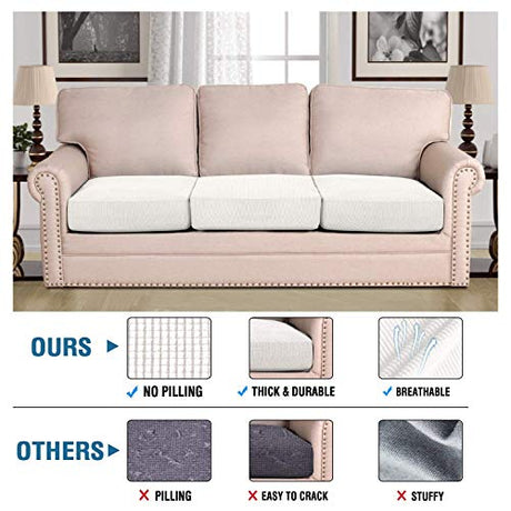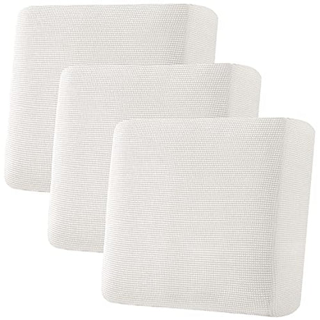 H.VERSAILTEX Super Stretch Individual Seat Cushion Covers Sofa Covers Couch Cushion Covers Slipcovers Featuring Thick Jacquard Textured Twill Fabric (3 Piece XL Sofa Cushion Covers, Off White)
