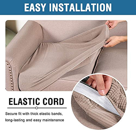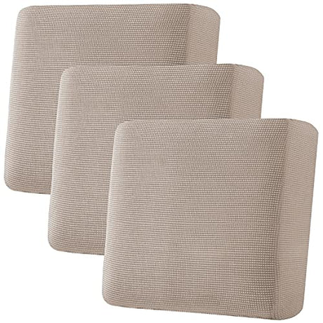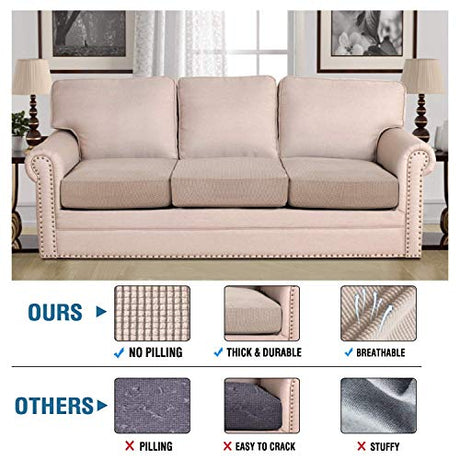 H.VERSAILTEX Super Stretch Individual Seat Cushion Covers Sofa Covers Couch Cushion Covers Slipcovers Featuring Thick Jacquard Textured Twill Fabric (3 Piece XL Sofa Cushion Covers, Sand)