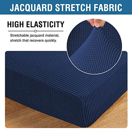 H.VERSAILTEX Super Stretch Individual Seat Cushion Covers Sofa Covers Couch Cushion Covers Slipcovers Featuring Thick Jacquard Textured Twill Fabric (3 Piece XL Sofa Cushion Covers, Navy)
