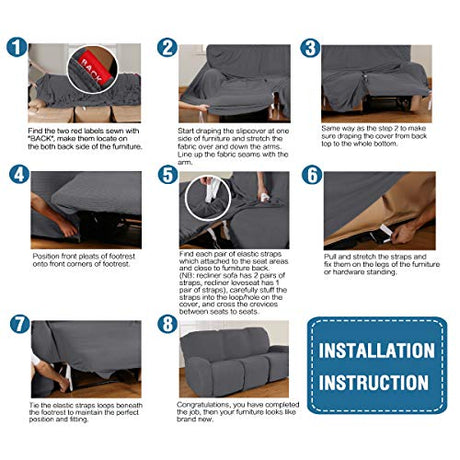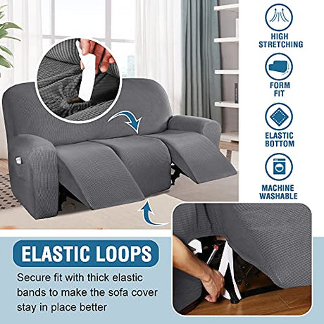 H.VERSAILTEX Super Stretch Recliner Sofa Covers Reclining Couch Covers Recliner Sofa Slipcovers 3 Seater Furniture Covers Thick Soft Jacquard Fabric Form Fitting and Easy Put On, Grey