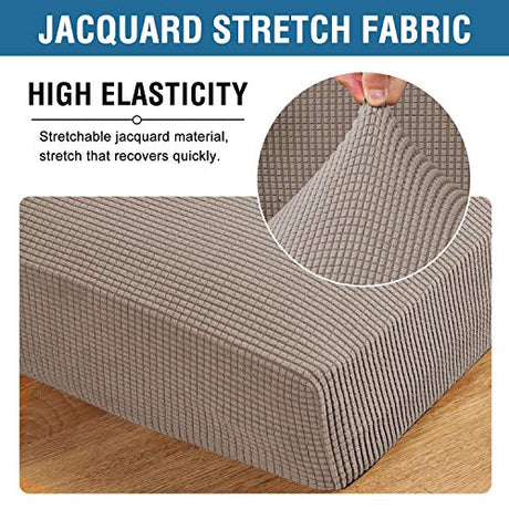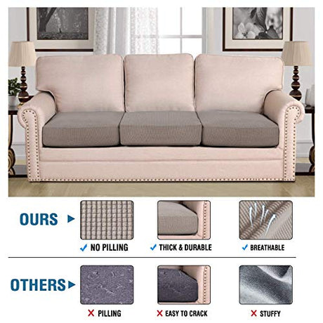 H.VERSAILTEX Super Stretch Individual Seat Cushion Covers Sofa Covers Couch Cushion Covers Slipcovers Featuring Thick Jacquard Textured Twill Fabric (3 Piece XL Sofa Cushion Covers, Taupe)