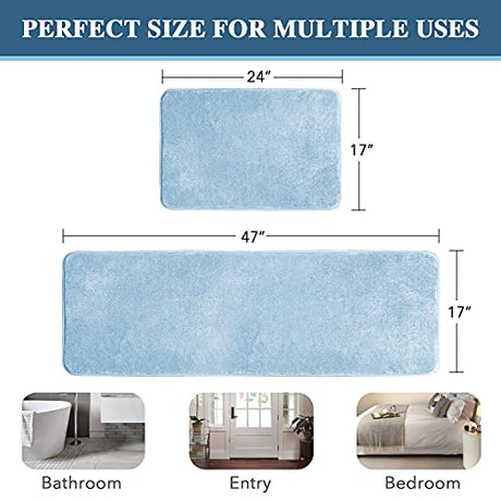 Kitchen Mat Set of 2 Memory Foam Set Bathroom Rug Set Flannel Velvety Bath Mat Luxury Extra Soft and Absorbent Non Slip Rugs for Kitchen/Bathroom Washable(47"x 17"/ 17"x 24", Sky Blue)