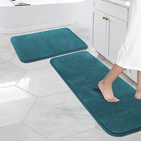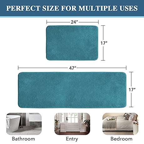 Kitchen Mat Set of 2 Memory Foam Set Bathroom Rug Set Flannel Velvety Bath Mat Luxury Extra Soft and Absorbent Non Slip Rugs for Kitchen/Bathroom Washable(47"x 17"/ 17"x 24", Dark Teal)