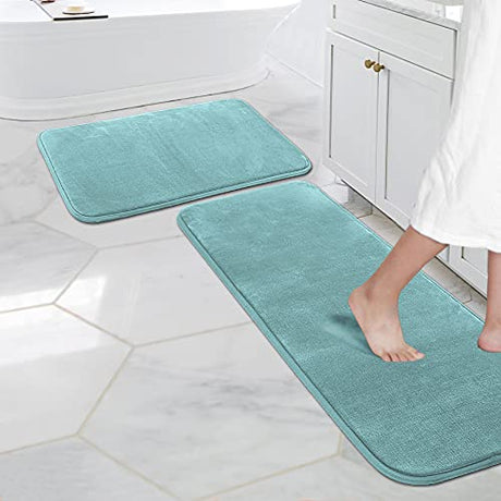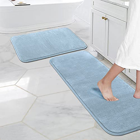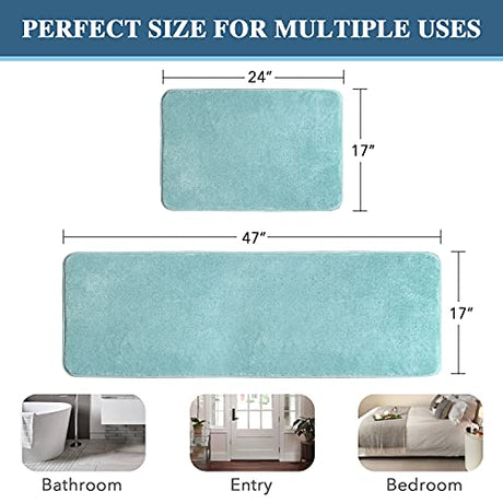 Kitchen Mat Set of 2 Memory Foam Set Bathroom Rug Set Flannel Velvety Bath Mat Luxury Extra Soft and Absorbent Non Slip Rugs for Kitchen/Bathroom Washable(47"x 17"/ 17"x 24", Eggshell Blue)