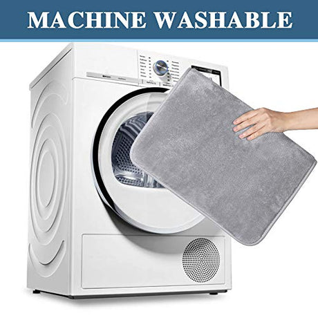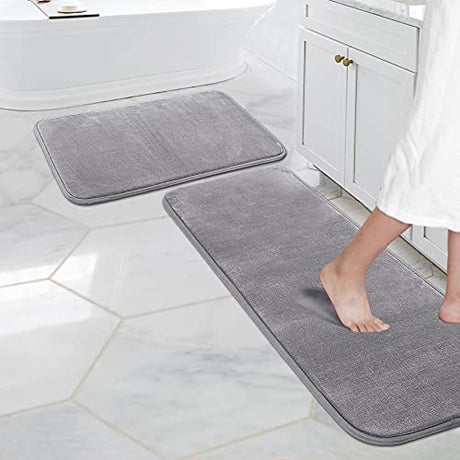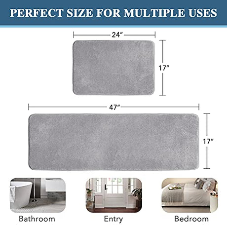 Kitchen Mat Set of 2 Memory Foam Set Bathroom Rug Set Flannel Velvety Bath Mat Luxury Extra Soft and Absorbent Non Slip Rugs for Kitchen/Bathroom Washable(47"x 17"/ 17"x 24", Grey)