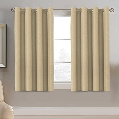 Linen Blackout Curtain 45 Inches Long for Bedroom / Living Room Thermal Insulated Grommet Linen Look Curtain Drapes Primitive Textured Burlap Effect Window Drapes 1 Panel - Beige