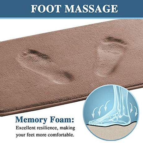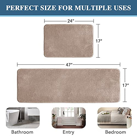 Kitchen Mat Set of 2 Memory Foam Set Bathroom Rug Set Flannel Velvety Bath Mat Luxury Extra Soft and Absorbent Non Slip Rugs for Kitchen/Bathroom Washable(47"x 17"/ 17"x 24", Taupe)
