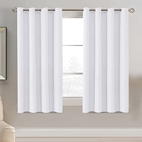 Linen Blackout Curtain 54 Inches Long for Bedroom / Living Room Thermal Insulated Grommet Linen Look Curtain Drapes Primitive Textured Burlap Effect Window Drapes 1 Panel - Pure White