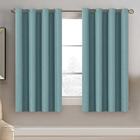 Linen Blackout Curtains 45 Inches Long 100% Absolutely Blackout Thermal Insulated Textured Linen Look Curtain Draperies Anti-Rust Grommet, Energy Saving with White Liner, 2 Panels, Sage
