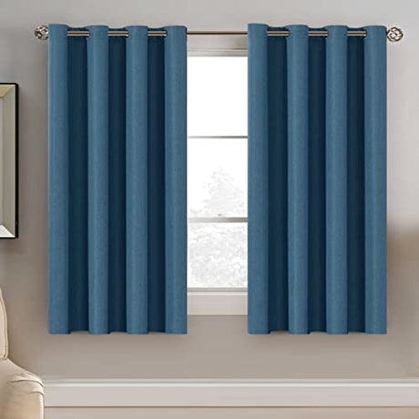 Linen Blackout Curtain 54 Inches Long for Bedroom / Living Room Thermal Insulated Grommet Linen Look Curtain Drapes Primitive Textured Burlap Effect Window Drapes 1 Panel - Navy