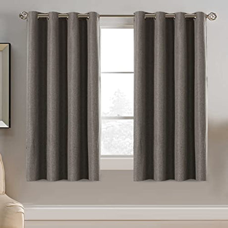 Linen Blackout Curtain 54 Inches Long for Bedroom / Living Room Thermal Insulated Grommet Linen Look Curtain Drapes Primitive Textured Burlap Effect Window Drapes 1 Panel - Taupe Gray