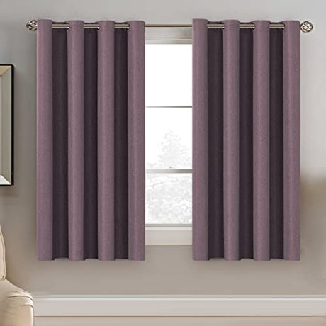 Linen Blackout Curtain 54 Inches Long for Bedroom / Living Room Thermal Insulated Grommet Linen Look Curtain Drapes Primitive Textured Burlap Effect Window Drapes 1 Panel - Mauve