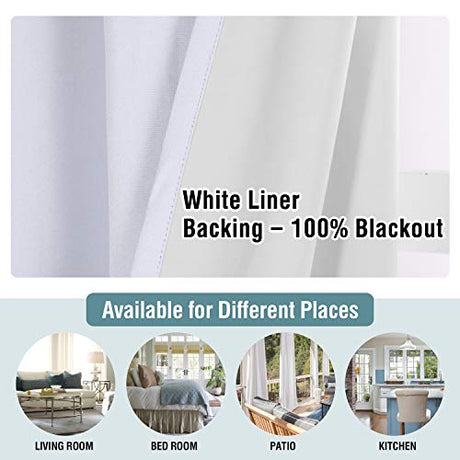 Linen Blackout Curtains 84 Inches Long 100% Absolutely Blackout Thermal Insulated Textured Linen Look Curtain Draperies Anti-Rust Grommet, Energy Saving with White Liner, 2 Panels, Bright White