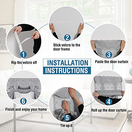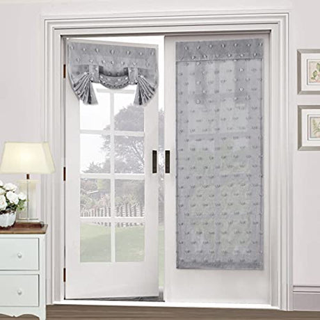 Linen Blended French Door Curtain Light Filtering French Door Blinds Privacy Tricia Window Covering Shade for Patio Door/Sidelight Door Tie Up Door Curtain, 26 x 68 Inch, 1 Panel, Pompom - Grey