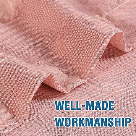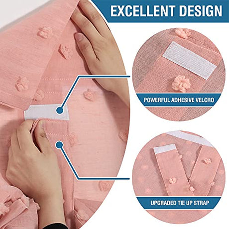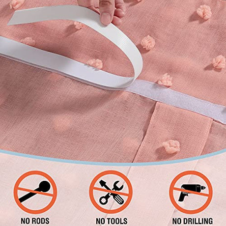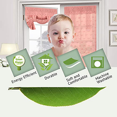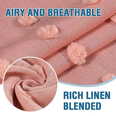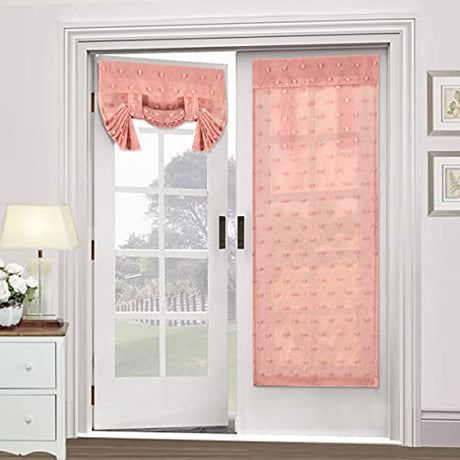 Linen Blended French Door Curtain Light Filtering French Door Blinds Privacy Tricia Window Covering Shade for Patio Door/Sidelight Door Tie Up Door Curtain, 26 x 68 Inch, 2 Panel, Pompom - Coral Pink