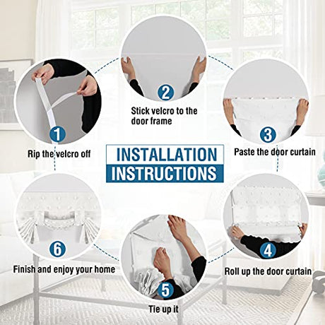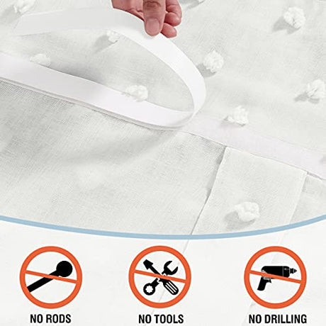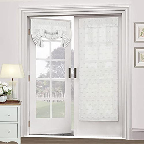 Linen Blended French Door Curtain Light Filtering French Door Blinds Privacy Tricia Window Covering Shade for Patio Door/Sidelight Door Tie Up Door Curtain, 26 x 68 Inch, 1 Panel, Pompom - White