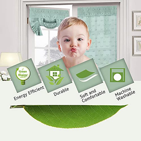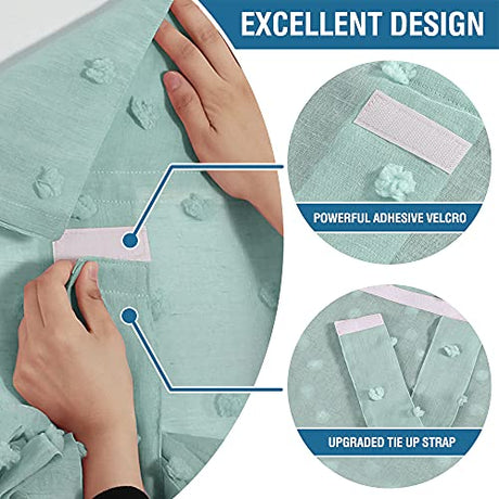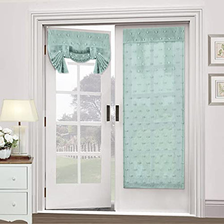 Linen Blended French Door Curtain Light Filtering French Door Blinds Privacy Tricia Window Covering Shade for Patio Door/Sidelight Door Tie Up Door Curtain, 26 x 68 Inch, 1 Panel, Pompom - Sea Mist
