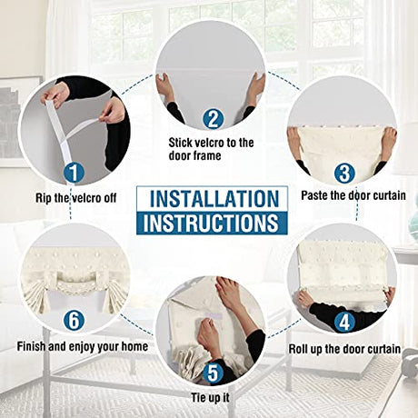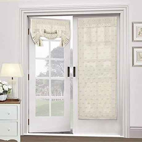 Linen Blended French Door Curtain Light Filtering French Door Blinds Privacy Tricia Window Covering Shade for Patio Door/Sidelight Door Tie Up Door Curtain, 26 x 68 Inch, 1 Panel, Pompom - Ivory