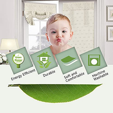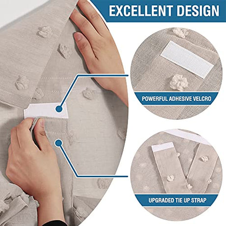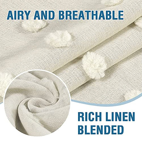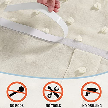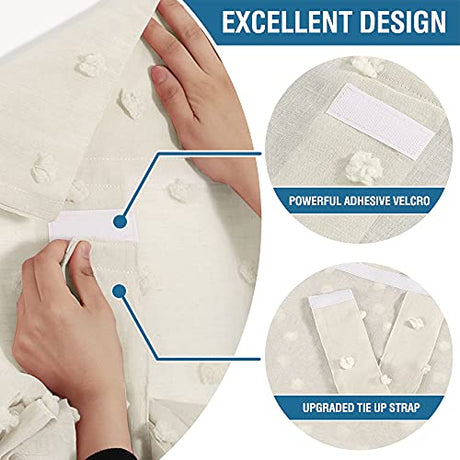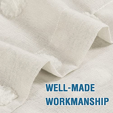 Linen Blended French Door Curtain Light Filtering French Door Blinds Privacy Tricia Window Covering Shade for Patio Door/Sidelight Door Tie Up Door Curtain, 26 x 68 Inch, 2 Panel, Pompom - Ivory