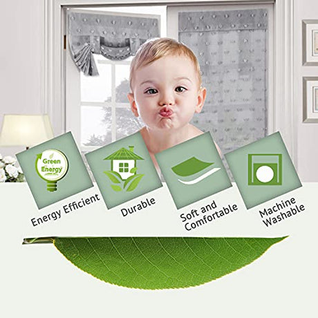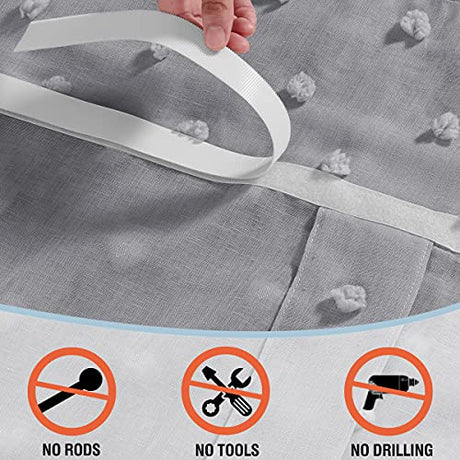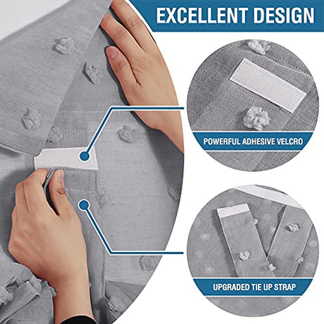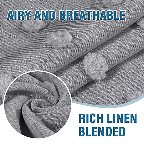 Linen Blended French Door Curtain Light Filtering French Door Blinds Privacy Tricia Window Covering Shade for Patio Door/Sidelight Door Tie Up Door Curtain, 26 x 68 Inch, 2 Panel, Pompom - Grey